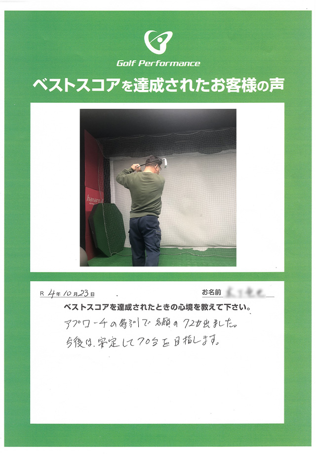 I.H.様 達成日:10/21 入会時のベストスコ…続きを読む