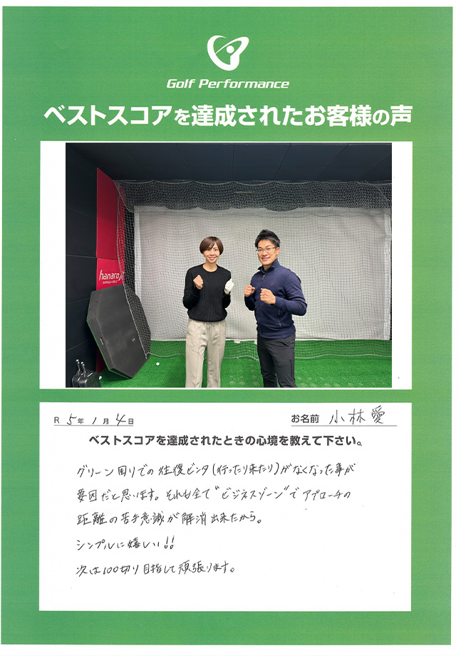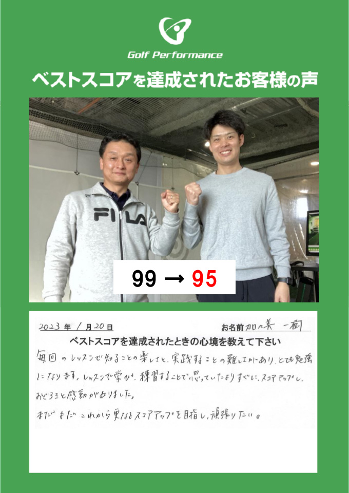 M.O.様 達成日:1/2 入会時のベストスコア:…続きを読む