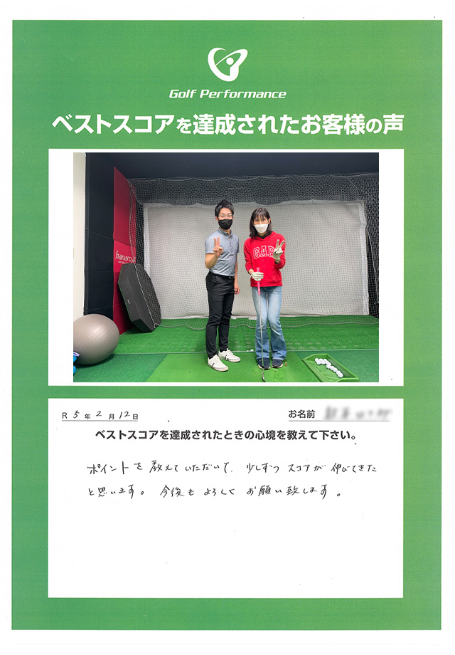 H.B.様 達成日:1/25 入会時のベストスコア…続きを読む