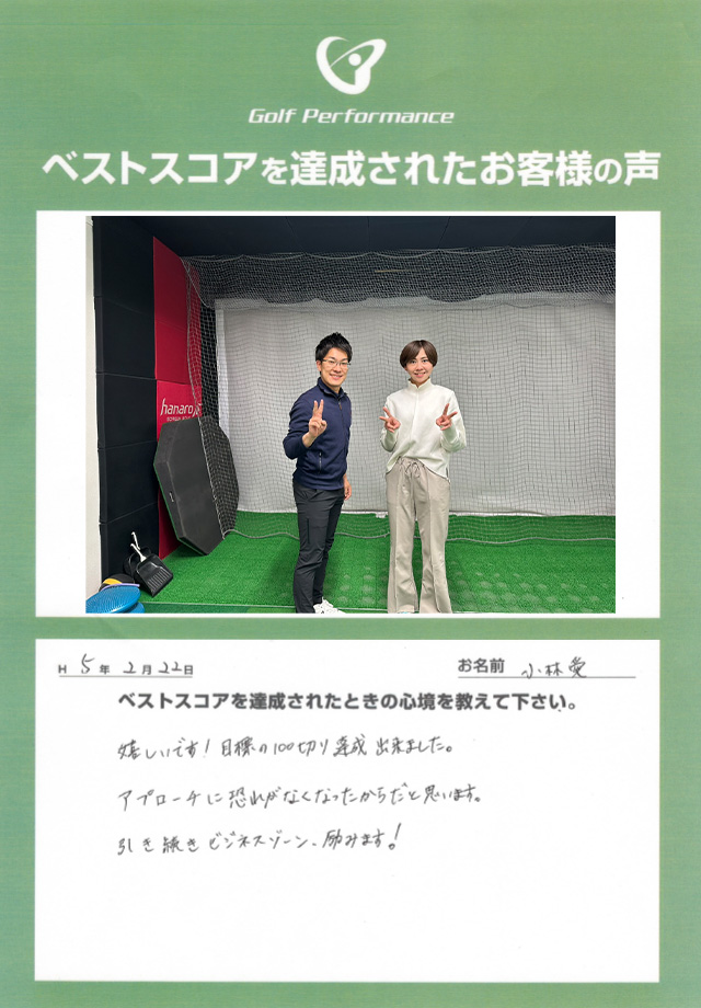 小林愛さま 達成日:2/22 入会時のベストスコア…続きを読む