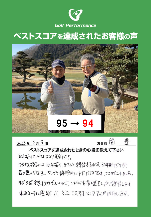関豊さま 達成日:2/3 ご入会時のベストスコア:…続きを読む