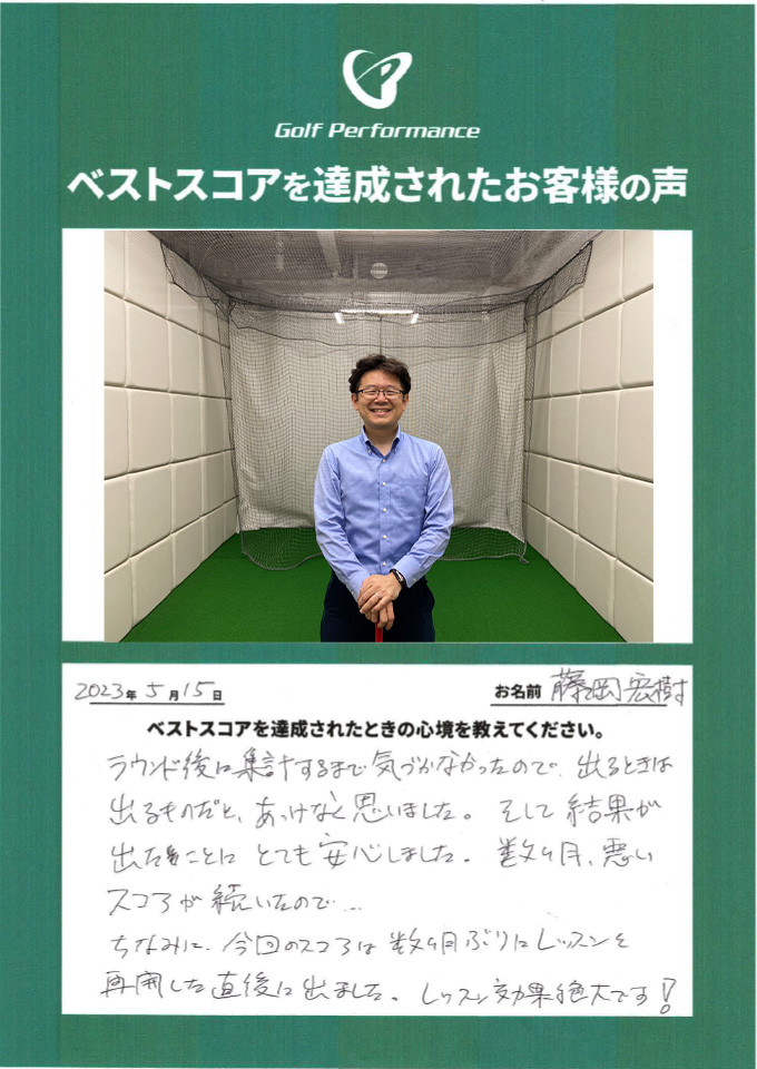 Y.F.様 達成日:4/16 入会時のベストスコア…続きを読む