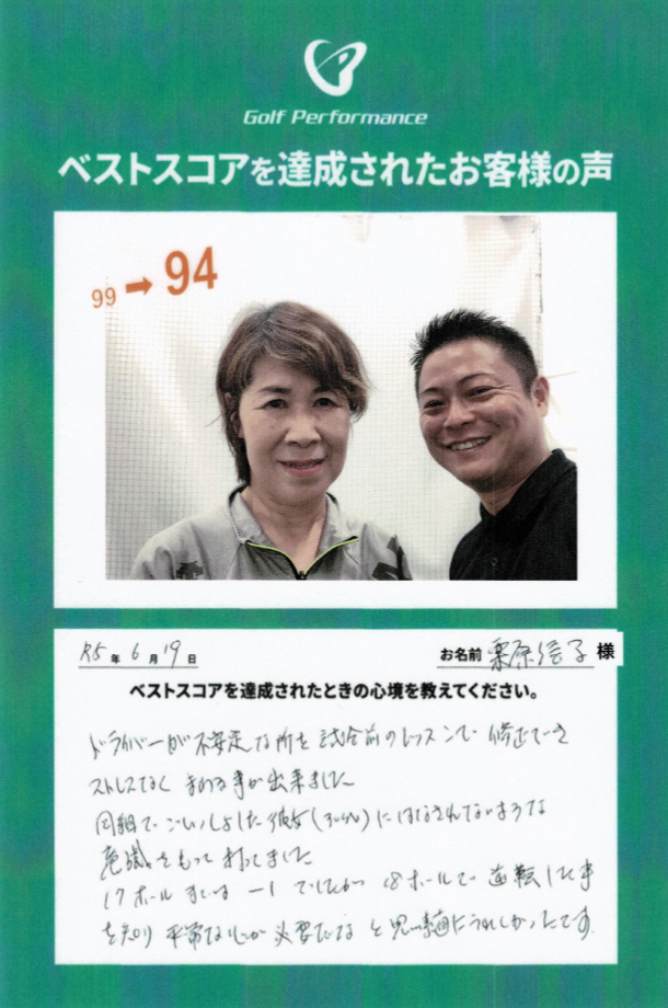 T.S.様 達成日:6/6 入会時のベストスコア:…続きを読む