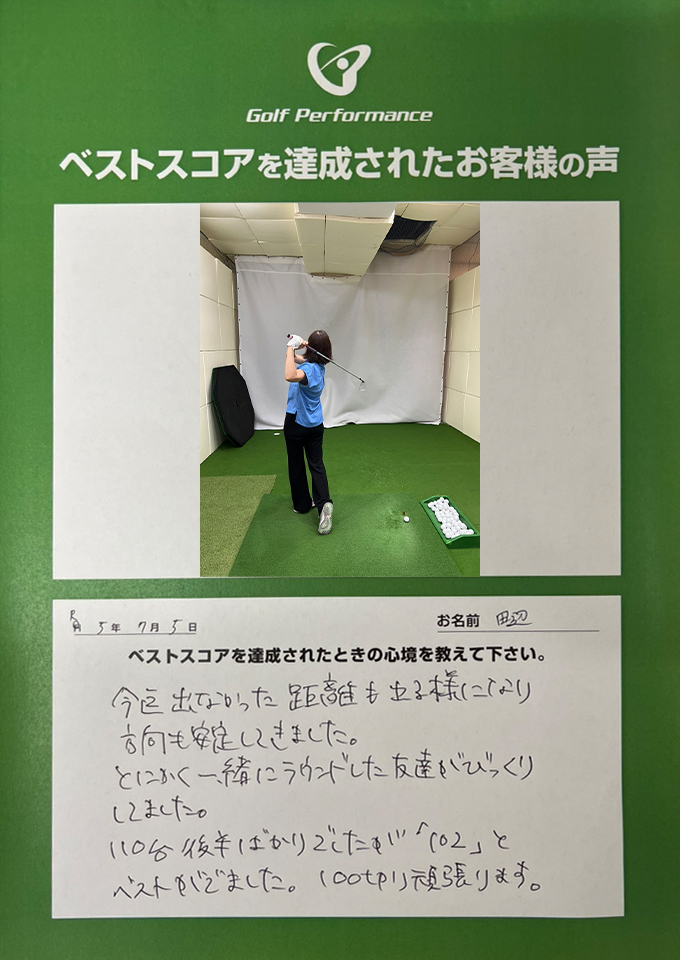田辺恵子様 達成日:6/29 入会時のベストスコア…続きを読む