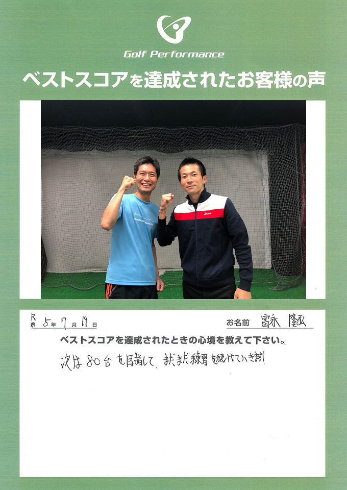 R.H.様 達成日:7/20 入会時のベストスコア…続きを読む