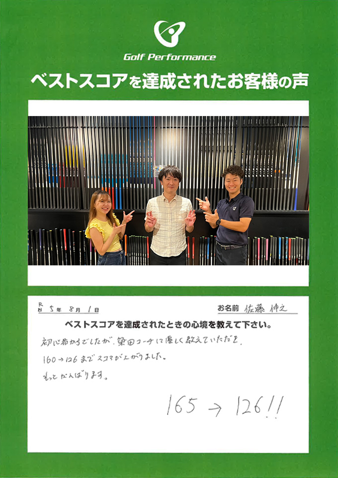 佐藤伸之様 達成日:7/28 入会時のベストスコア…続きを読む