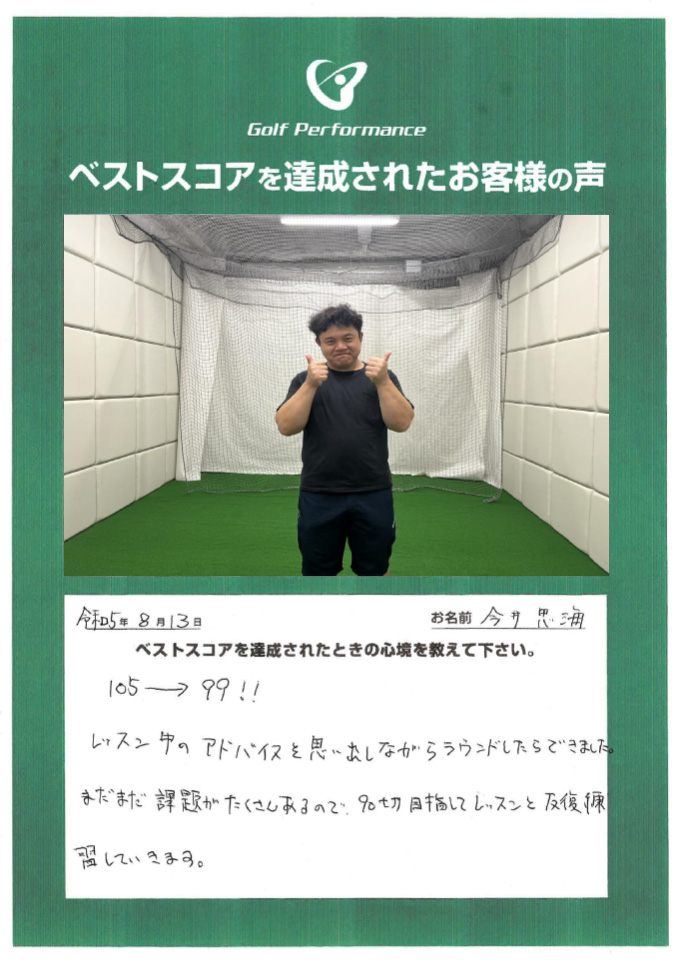 清塚智晴様 達成日:8/20 入会時のベストスコア…続きを読む