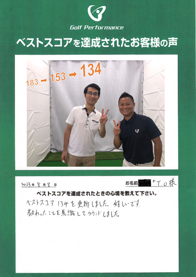 山本さま 達成日8/23 入会時のベストスコア:1…続きを読む