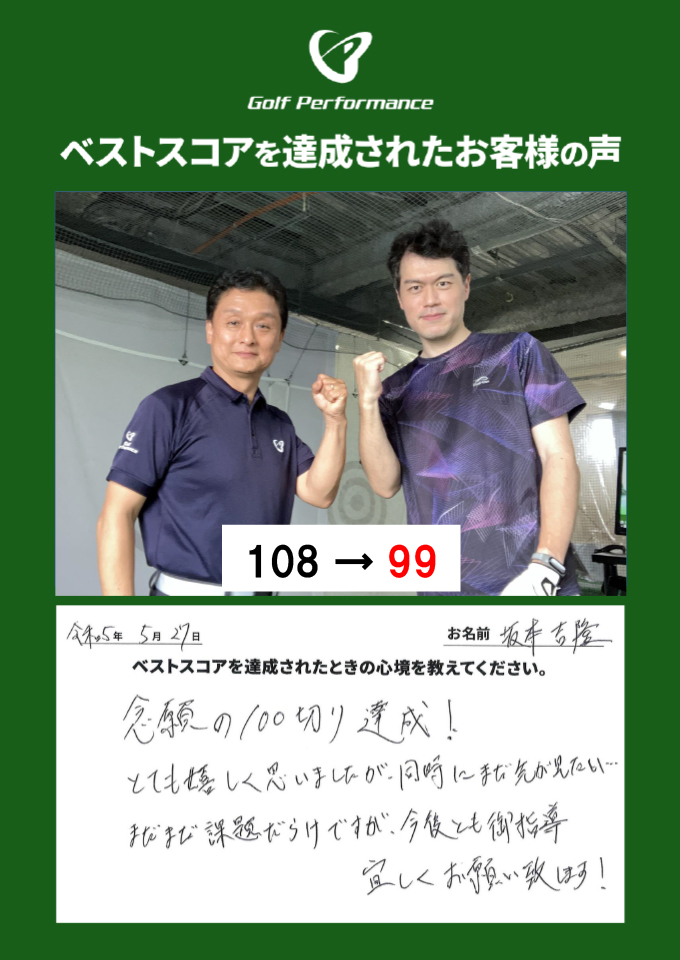 坂本吉隆さまベストスコア更新! 108→99