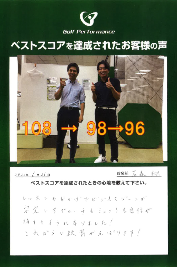 石森翔さまベストスコア更新! 108→96