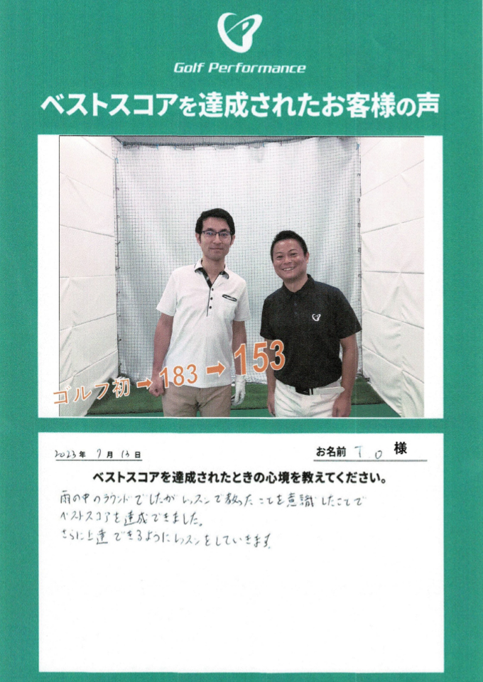 T.U.さま 達成日:7/28 入会時のベストスコ…続きを読む