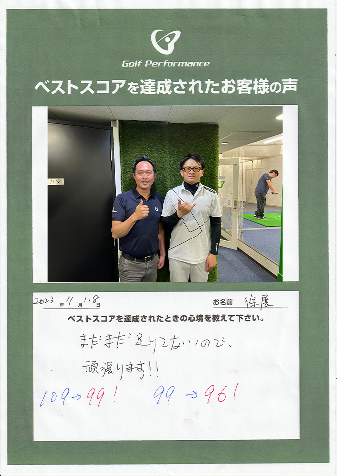 髙栁大昌さまベストスコア更新! 109→106