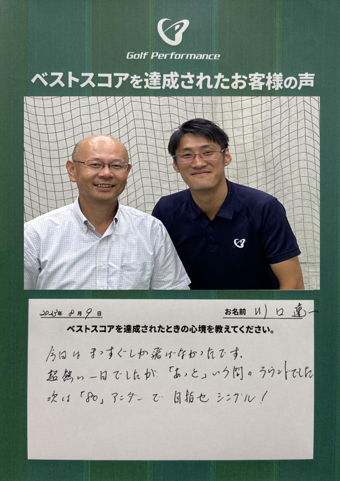 川口速一さま 達成日:8/8 入会時のベストスコア…続きを読む
