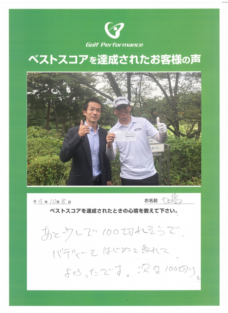 T.S.様 達成日:10/20 入会時のベストスコ…続きを読む