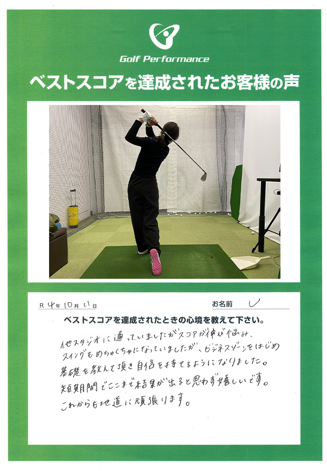 K.Y.様 達成日:10/16 入会時のベストスコ…続きを読む