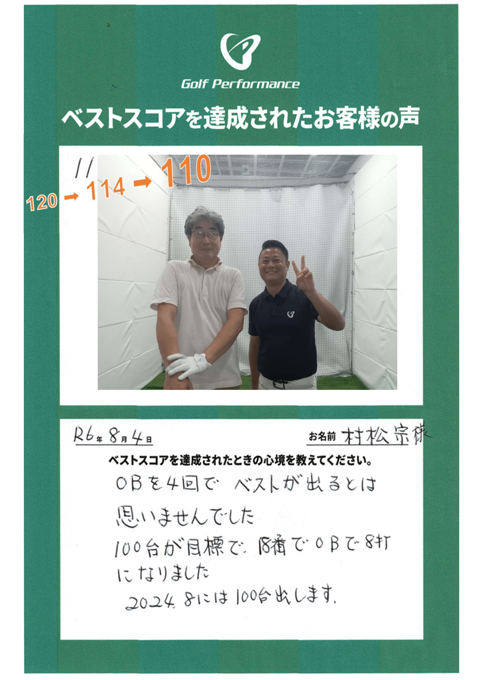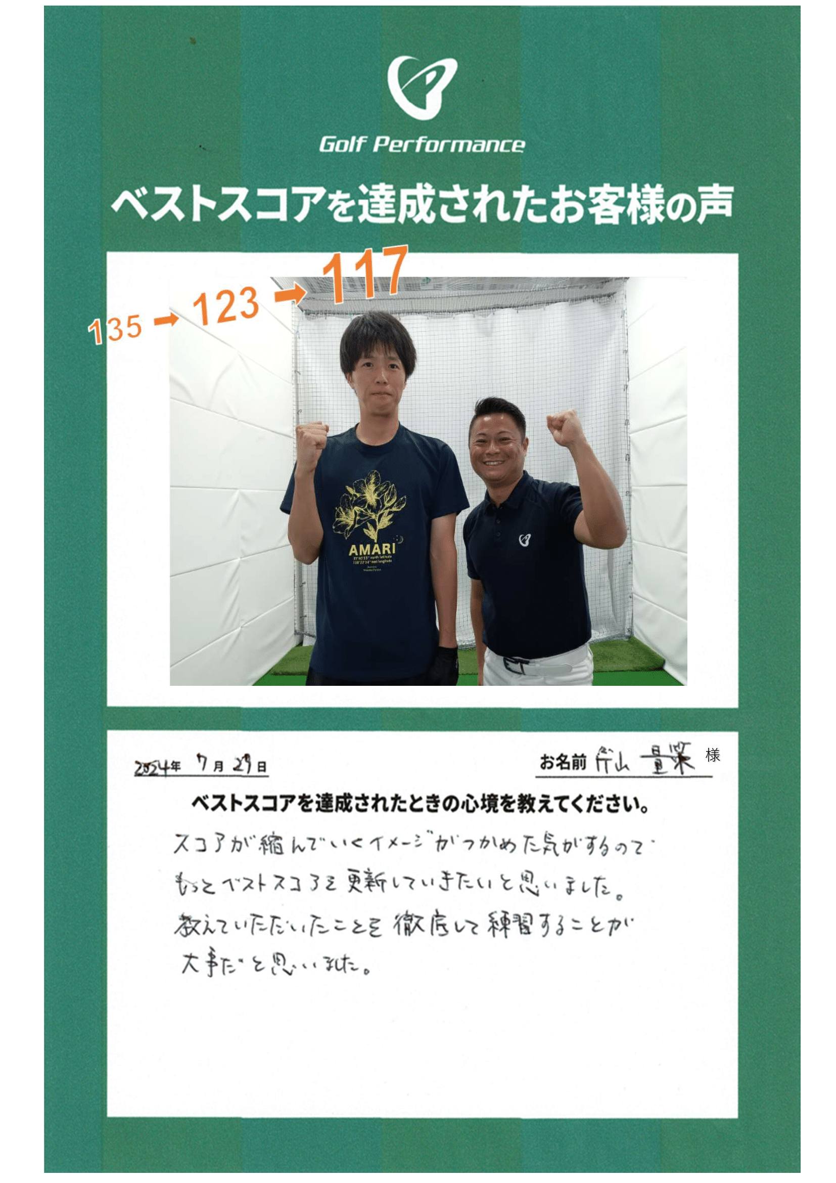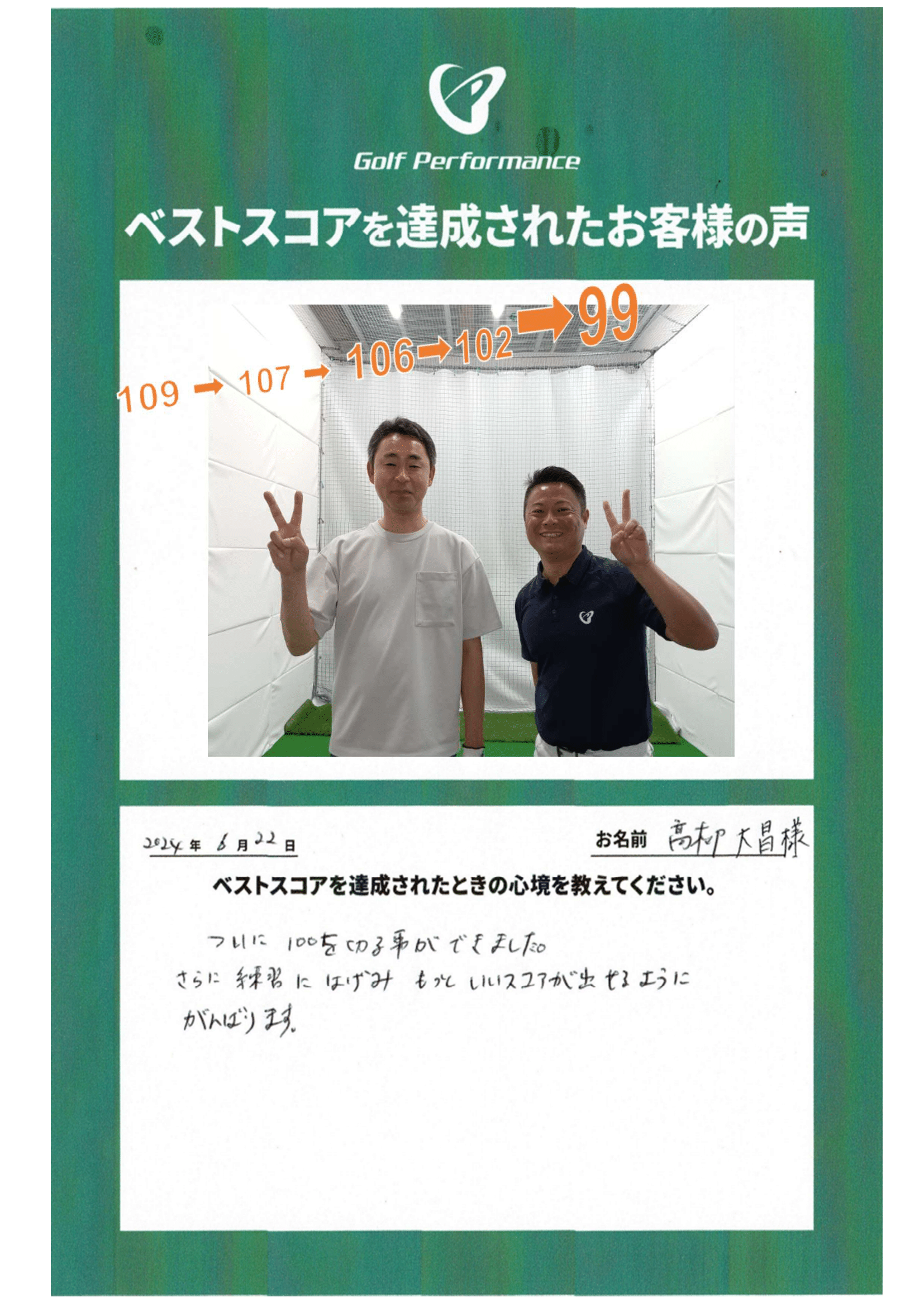 F.M.さま 達成日:7/4 入会時のベストスコア…続きを読む