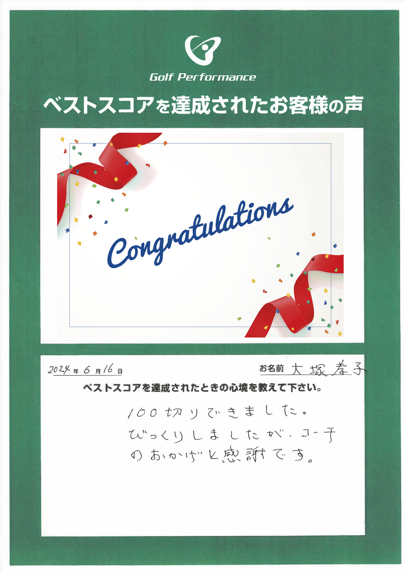 大塚孝子さま 達成日:6/16 入会時のベストスコ…続きを読む