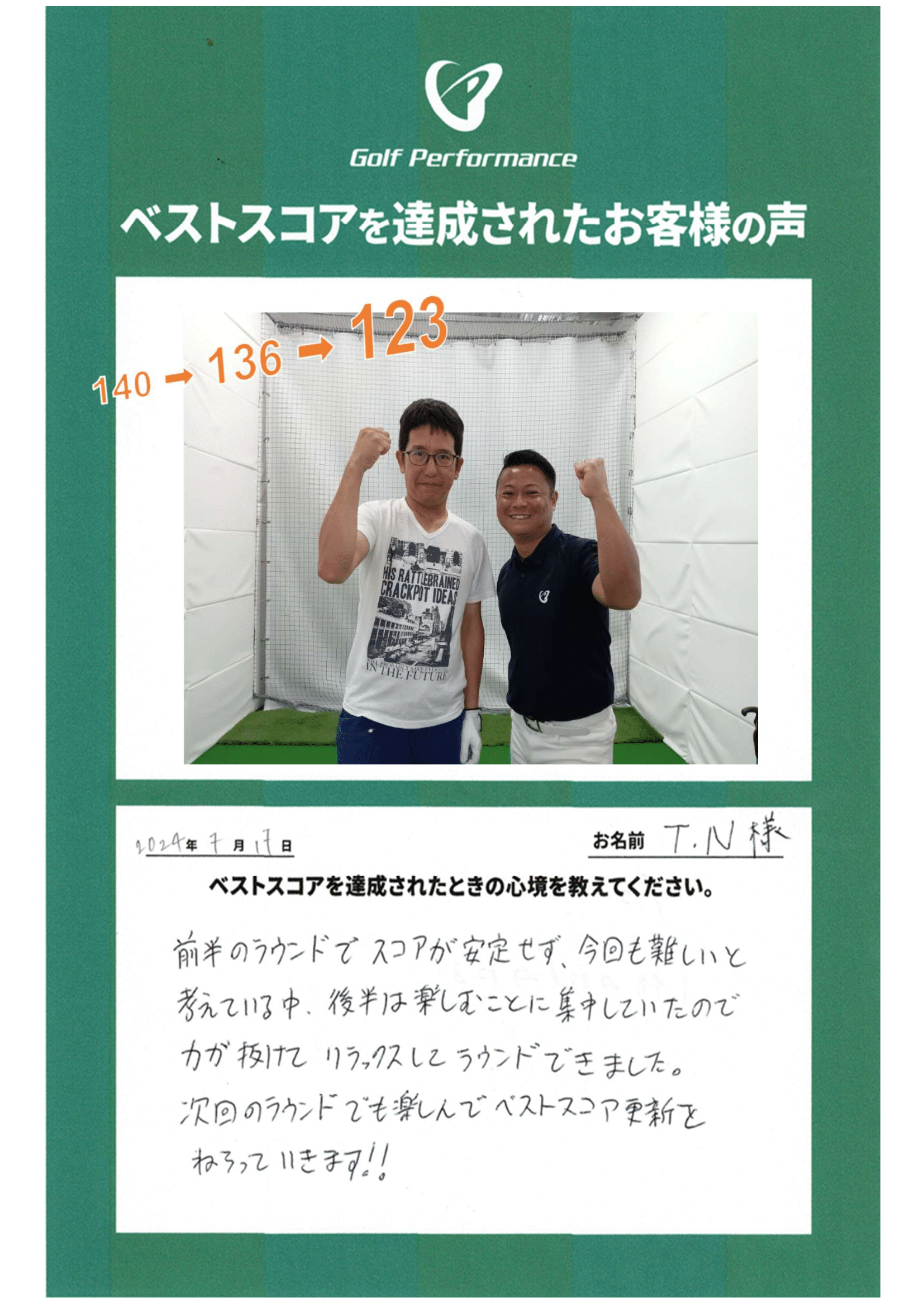T.N.さま 達成日:7/17 入会時のベストスコ…続きを読む