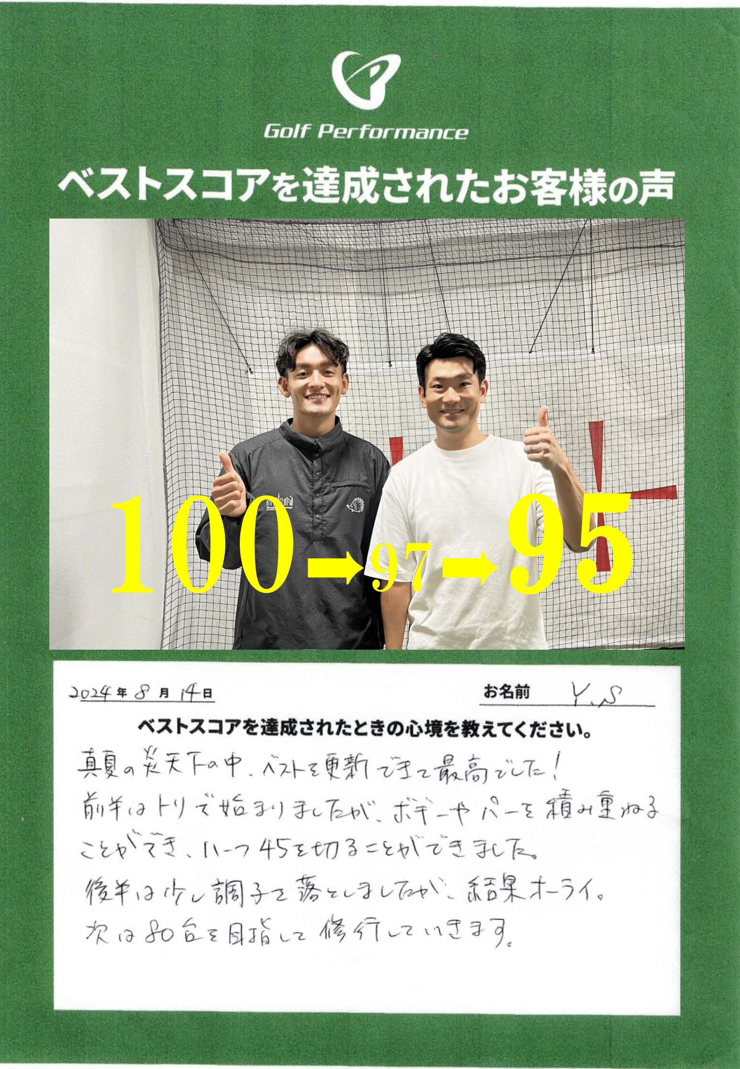 Y.S.さま 達成日:8/14 入会時のベストスコ…続きを読む