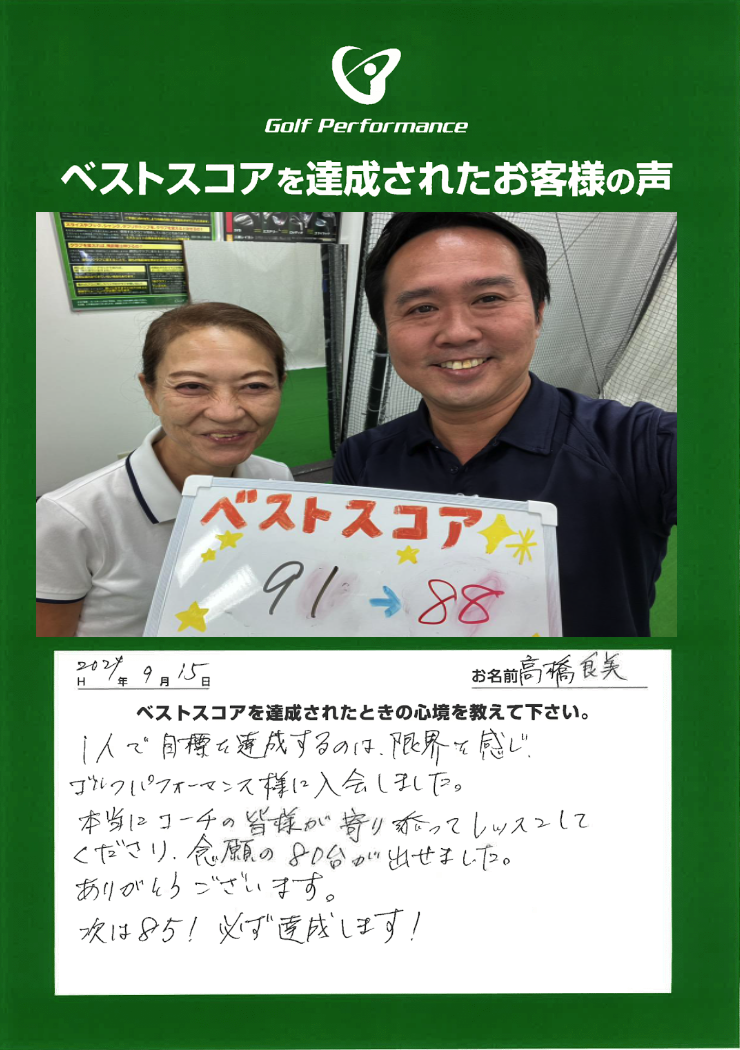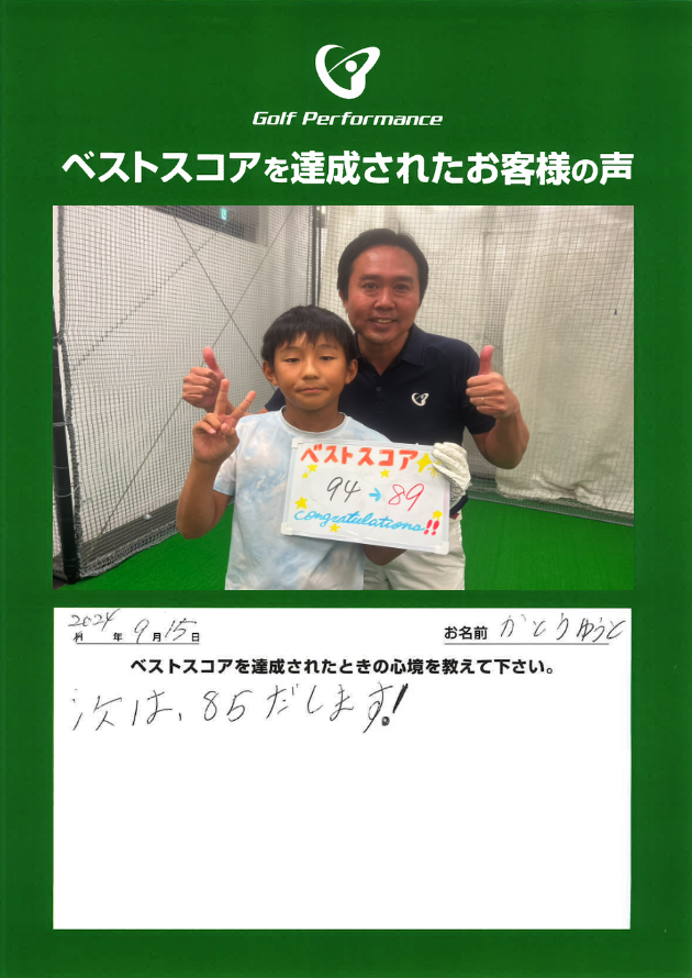 Fさま 達成日:9/14 入会時のベストスコア:9…続きを読む