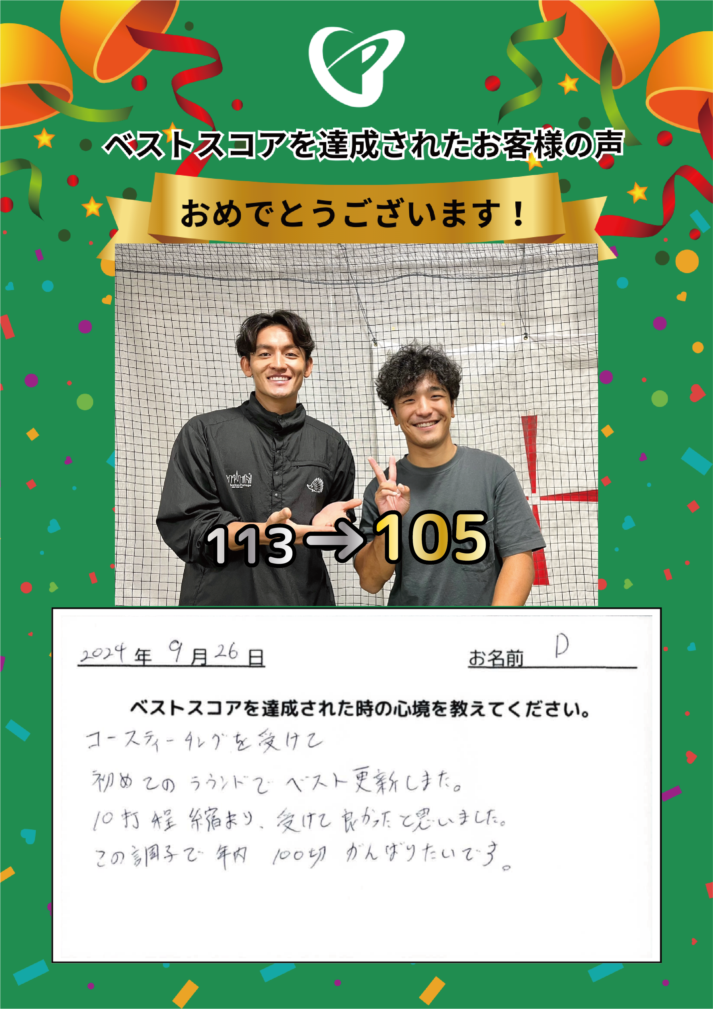 K.D.さま 達成日:7/20 入会時のベストスコ…続きを読む