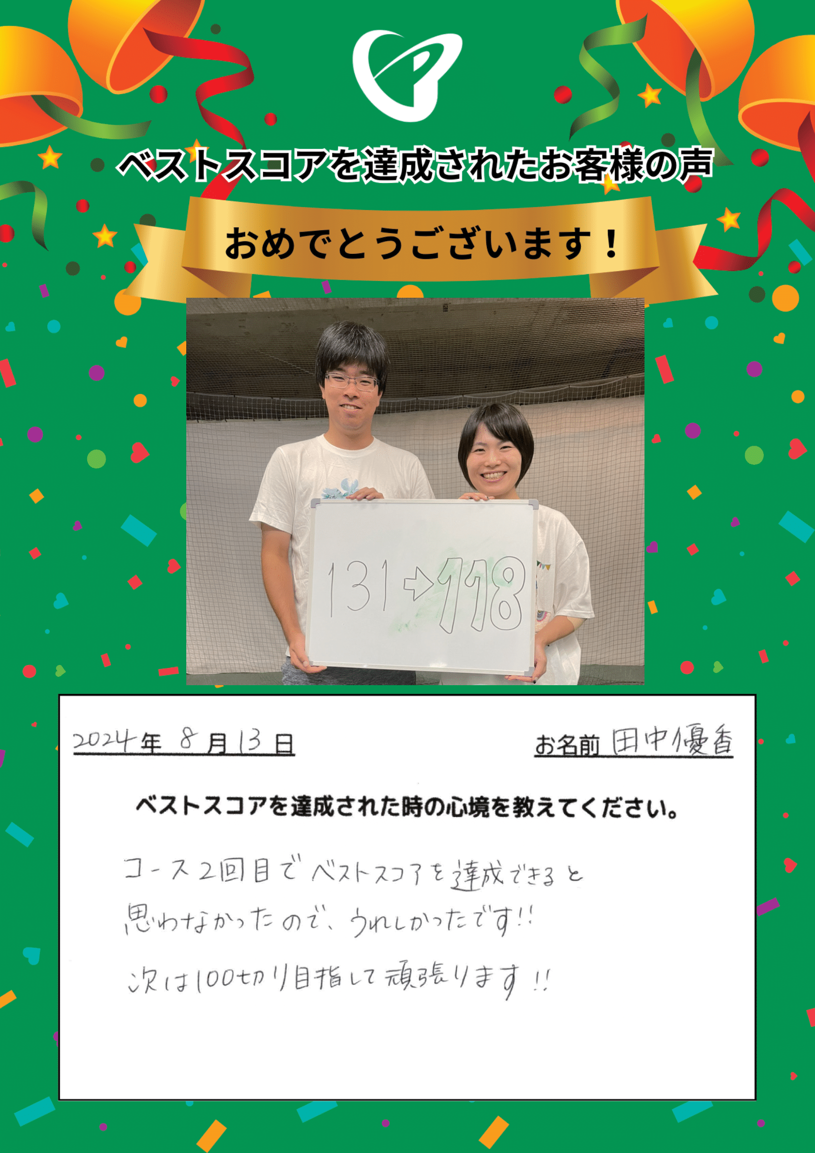 T.Y.さま 達成日:8/13 入会時のベストスコ…続きを読む