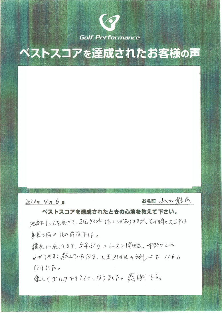 M.Y.さま 達成日:4/6 入会時のベストスコア…続きを読む