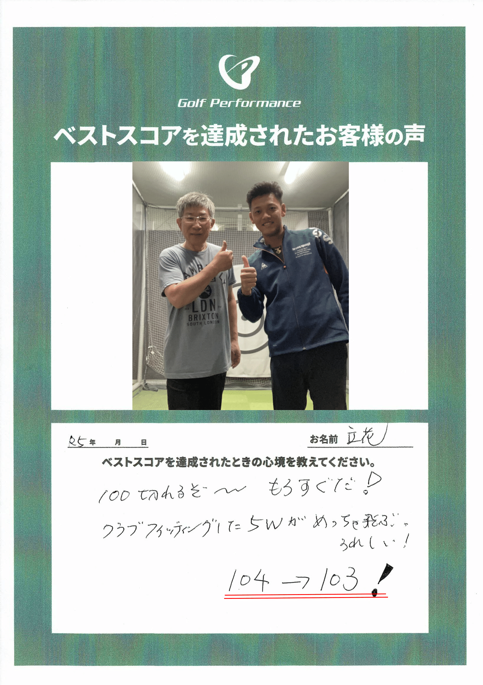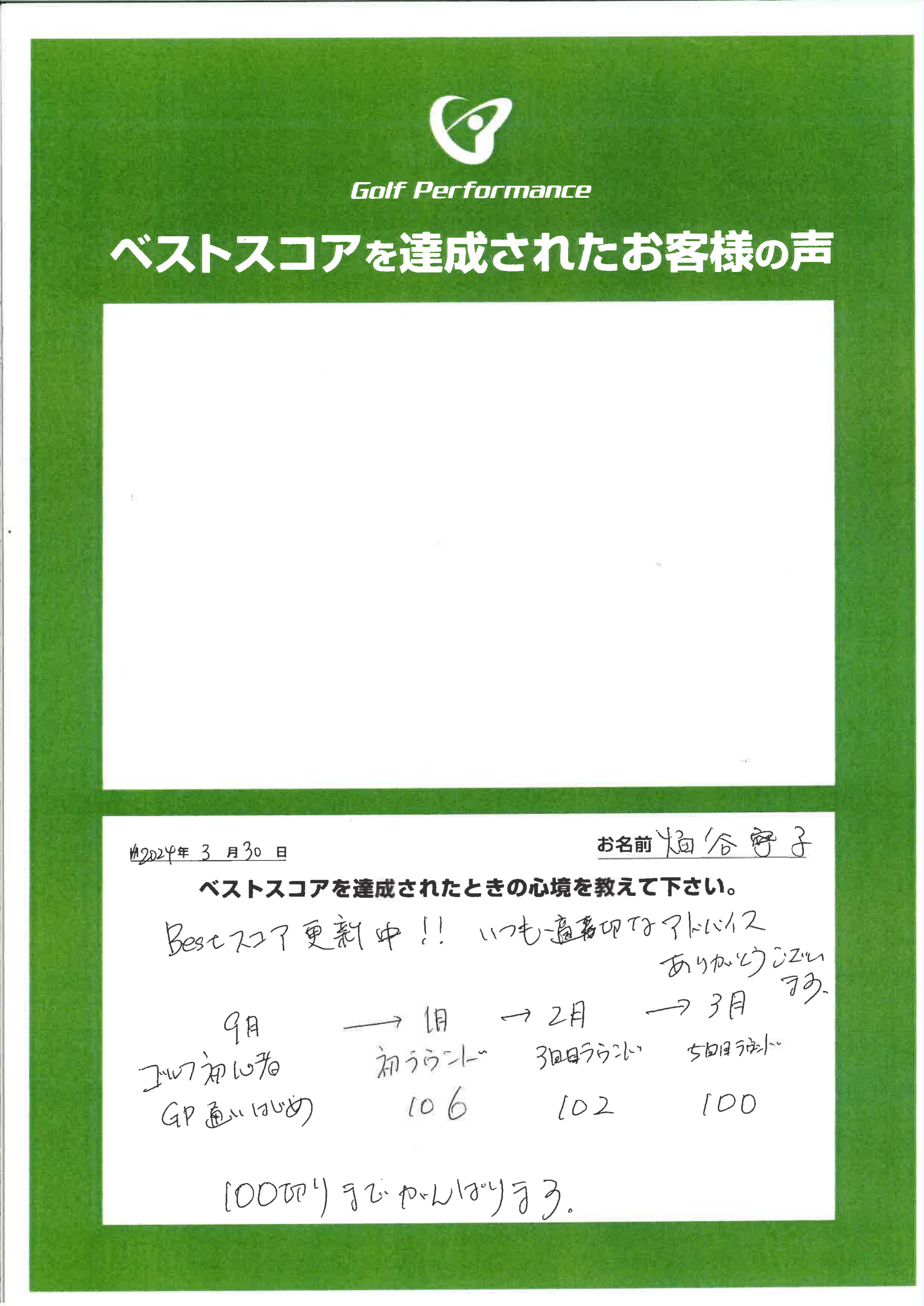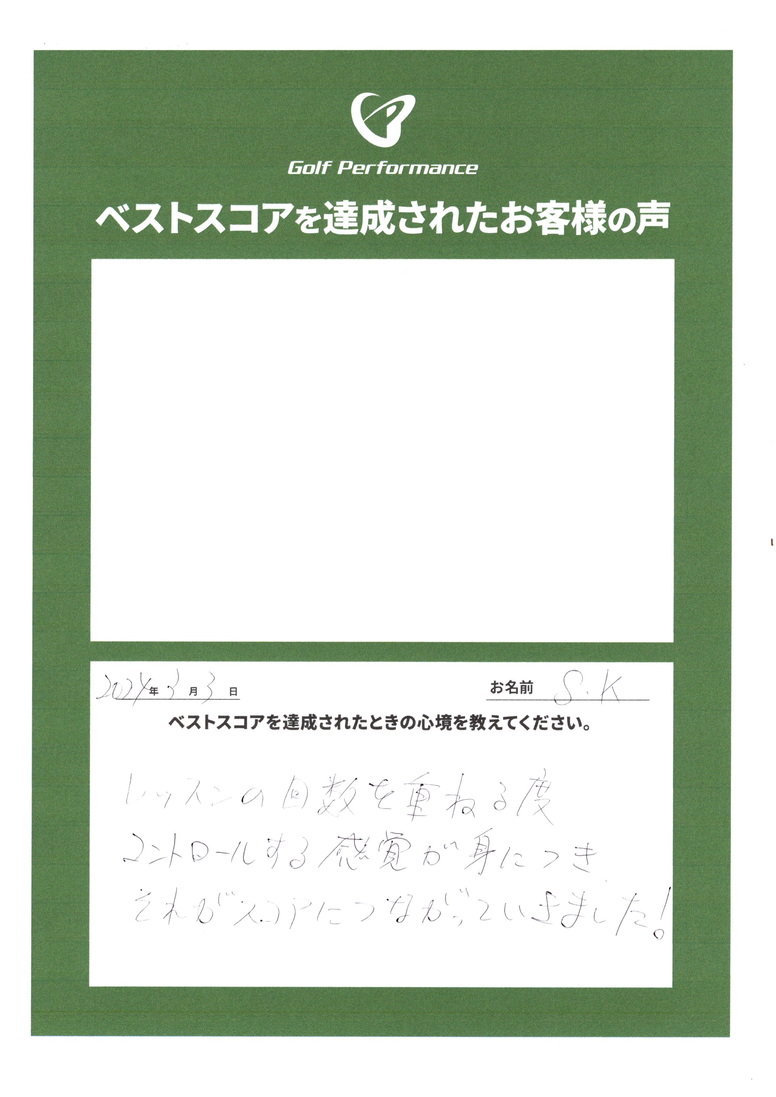 S.K.さま 達成日:3/3 入会時のベストスコア…続きを読む