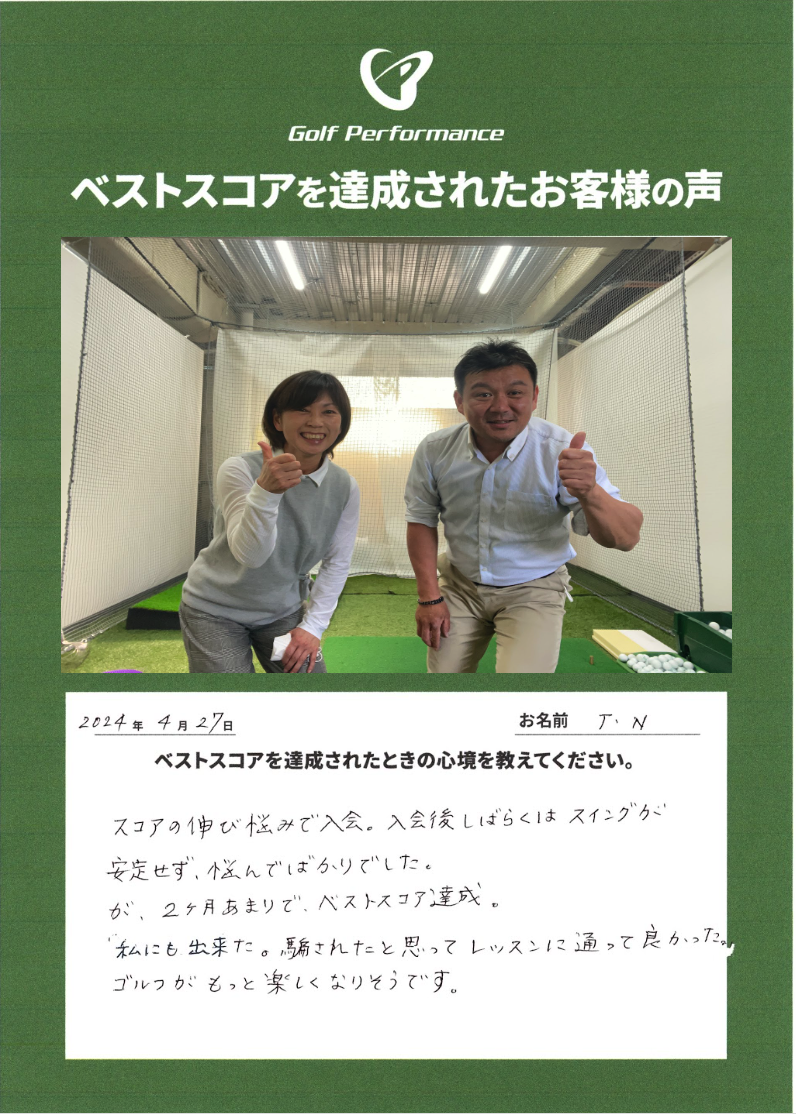 T.Y.さま 達成日:4/13 入会時のベストスコ…続きを読む