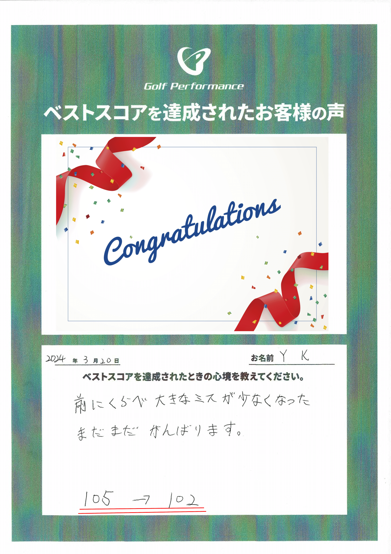 K.Y.さま 達成日:3/13 入会時のベストスコ…続きを読む