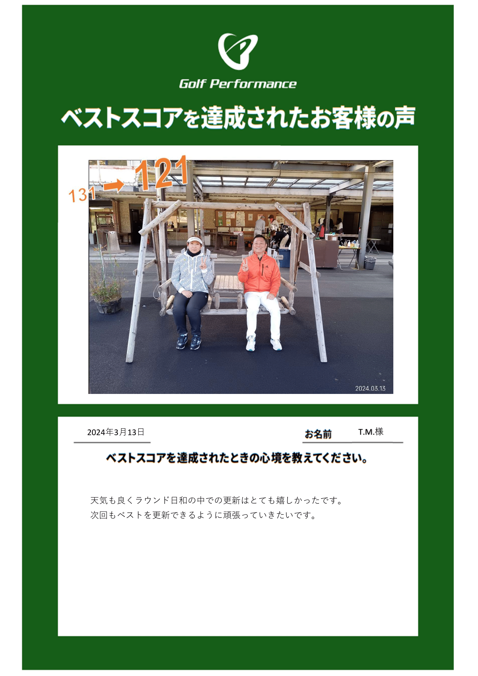 T.U.さま 達成日:3/27 入会時のベストスコ…続きを読む