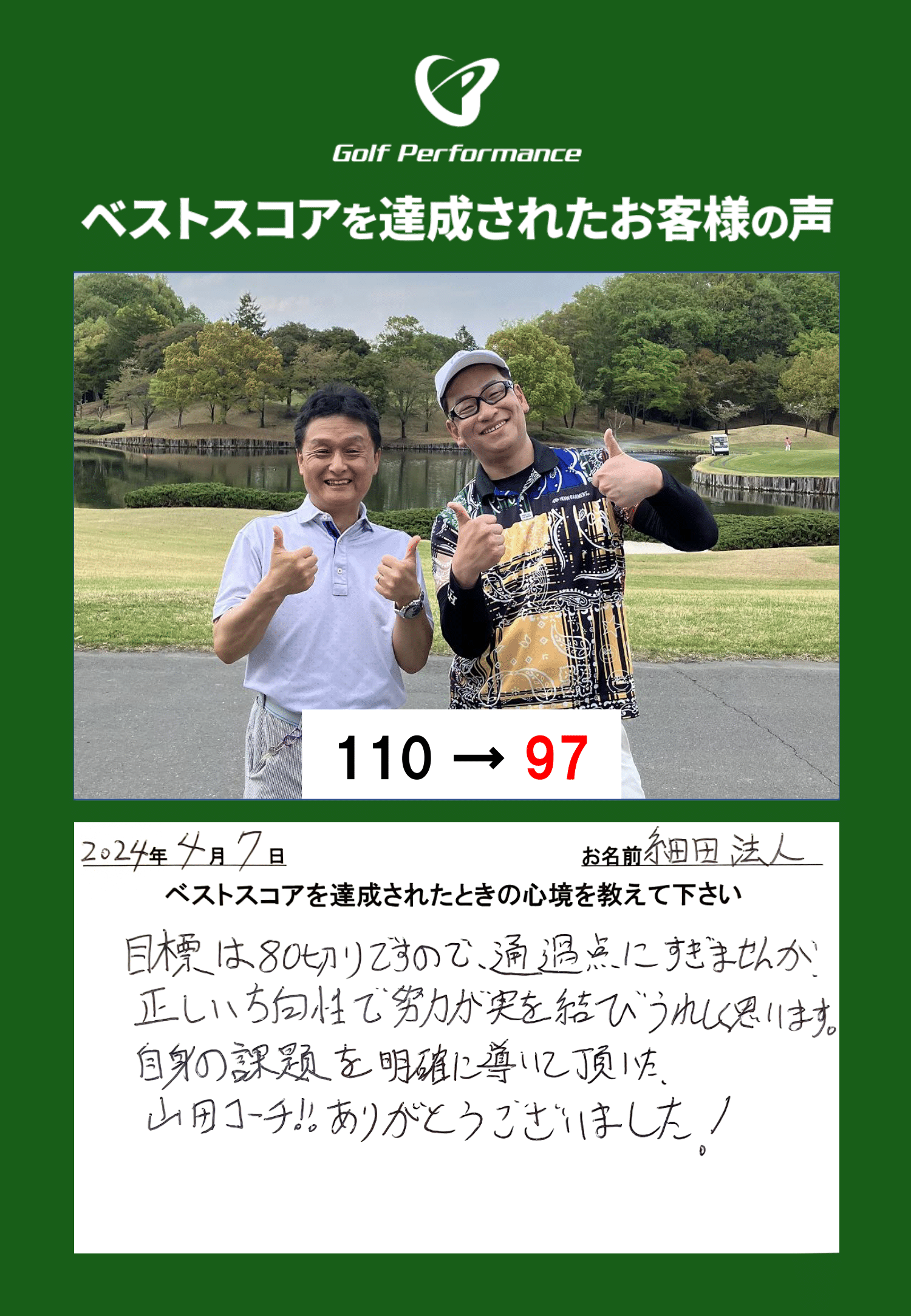 細田法人さま 達成日:4/7 入会時のベストスコア…続きを読む