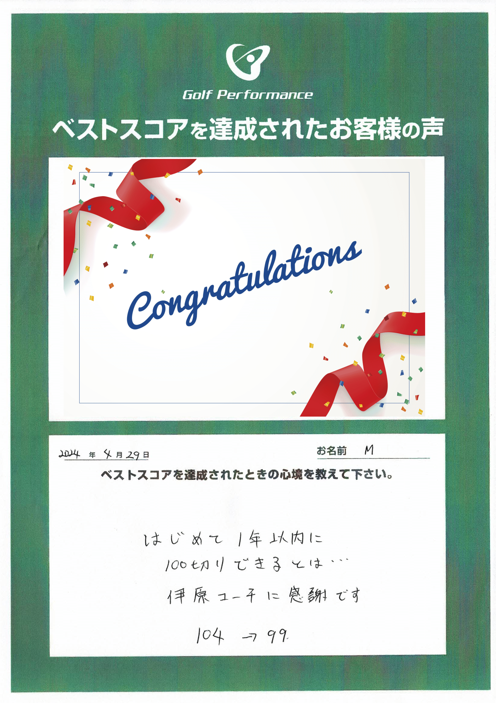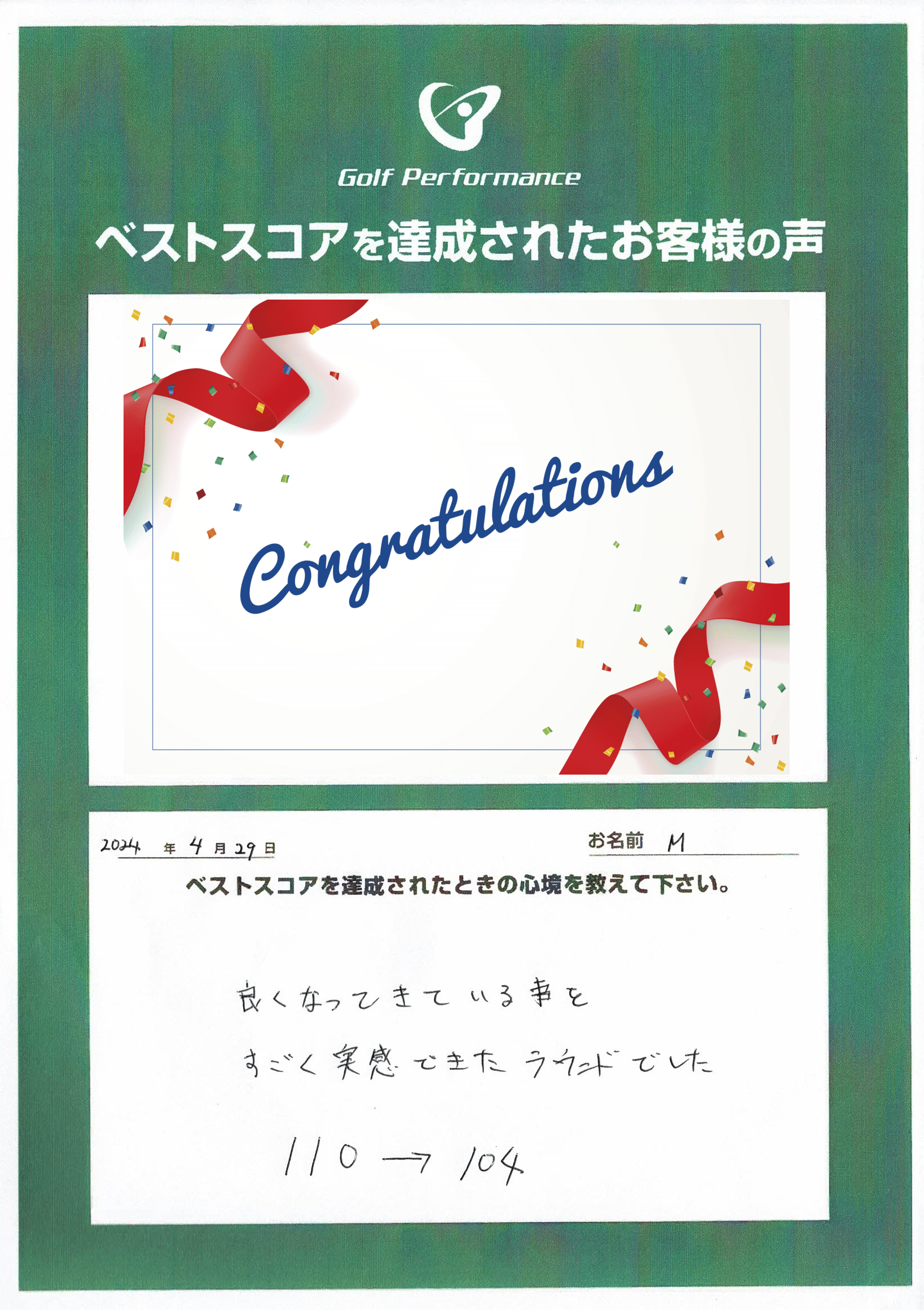 Y.M.さま 達成日:4/22 入会時のベストスコ…続きを読む