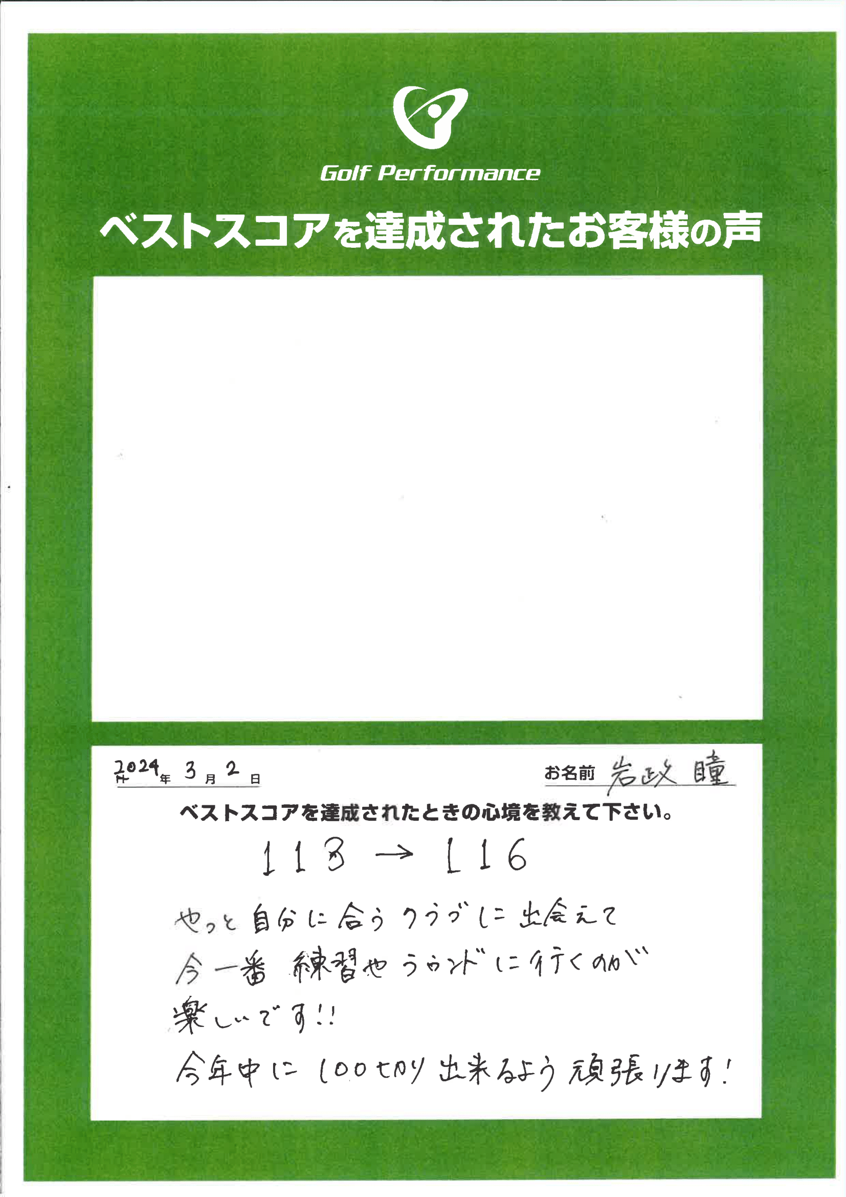 岩政瞳さま 達成日:3/2 入会時のベストスコア:…続きを読む