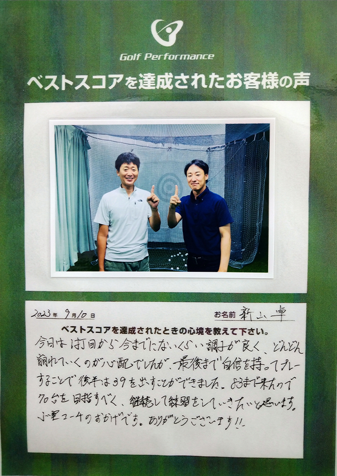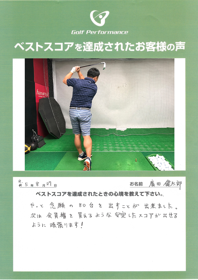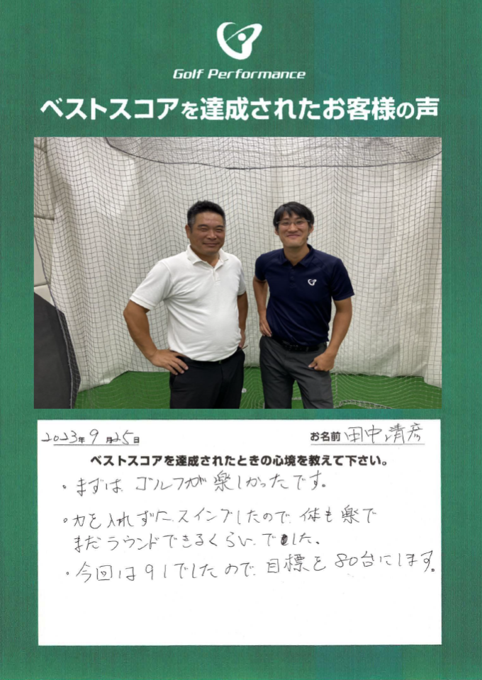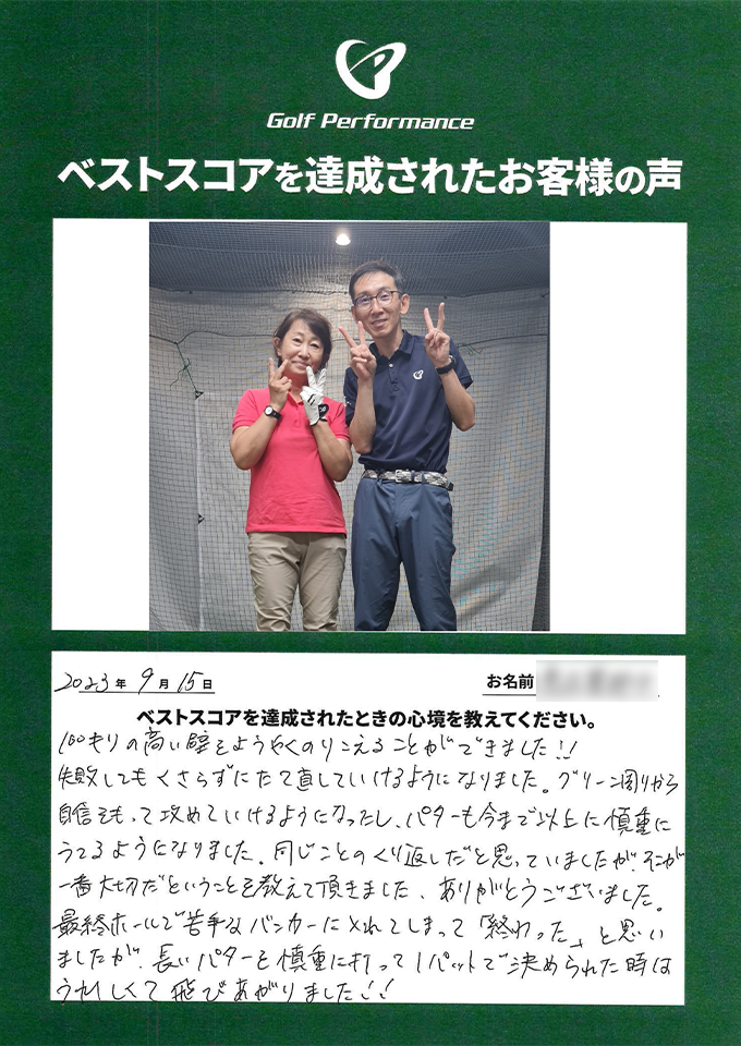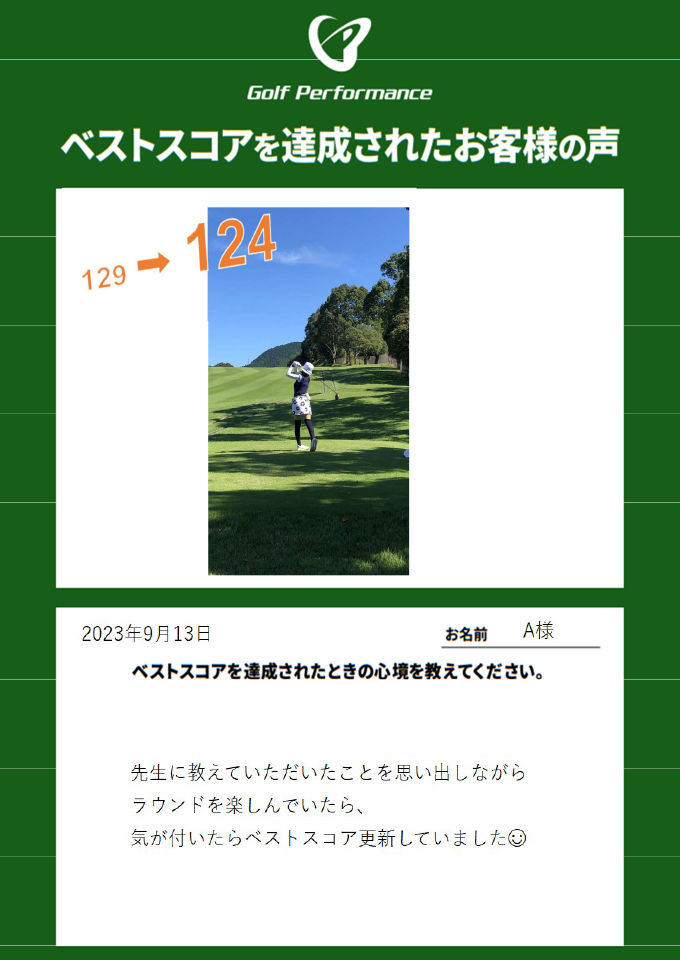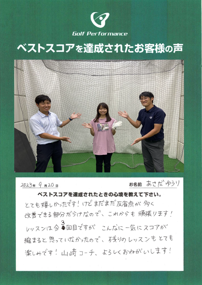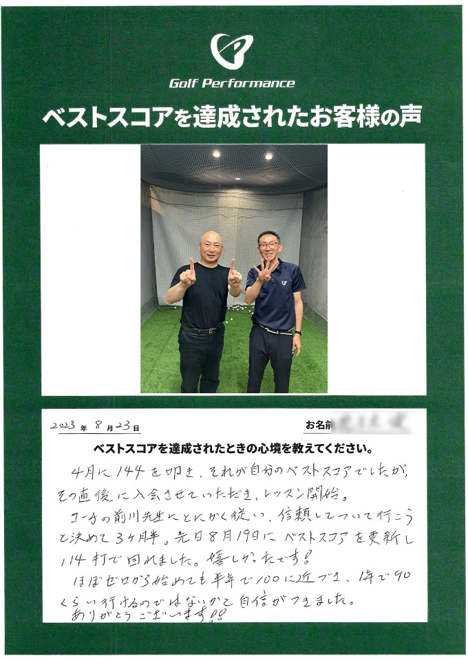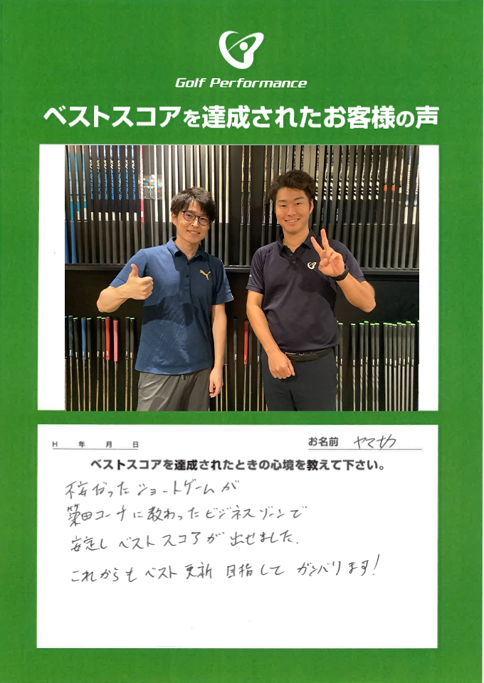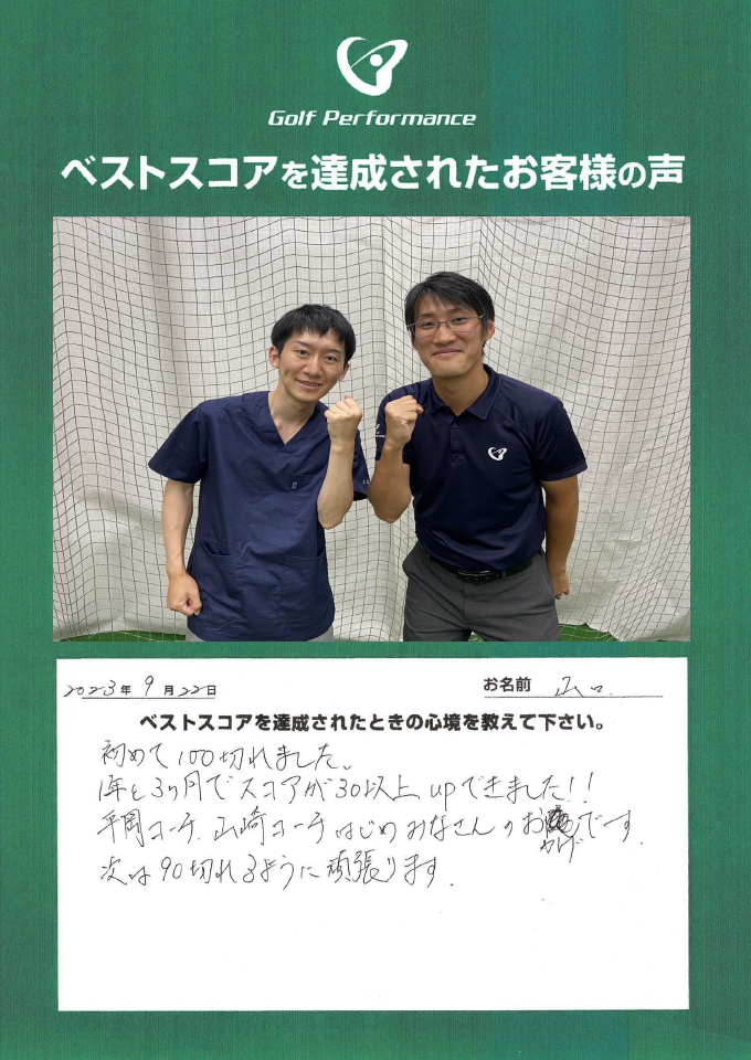 Y.U.さま 達成日:9/3 入会時のベストスコア…続きを読む