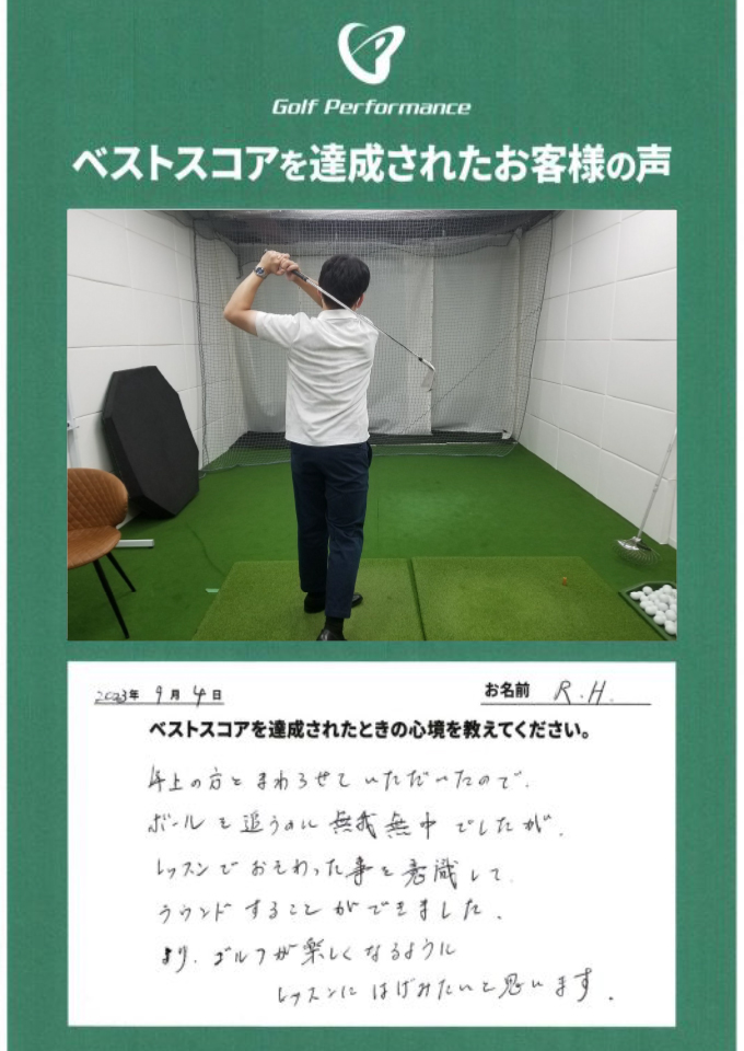 R.H.さま 達成日:9/4 入会時のベストスコア…続きを読む