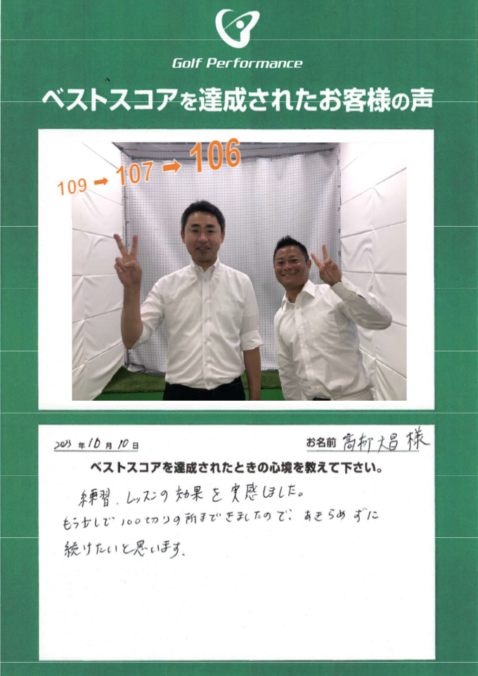 髙栁大昌さま 達成日9/3 入会時のベストスコア:…続きを読む