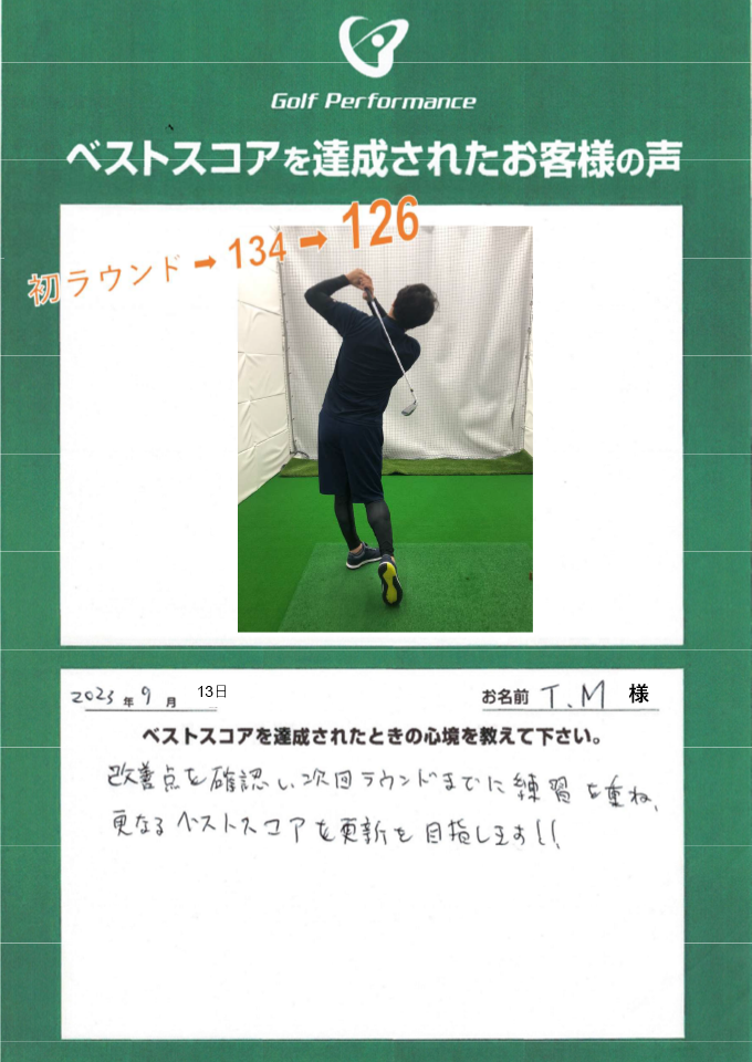 T.M.さま 達成日9/13 入会時のベストスコア…続きを読む