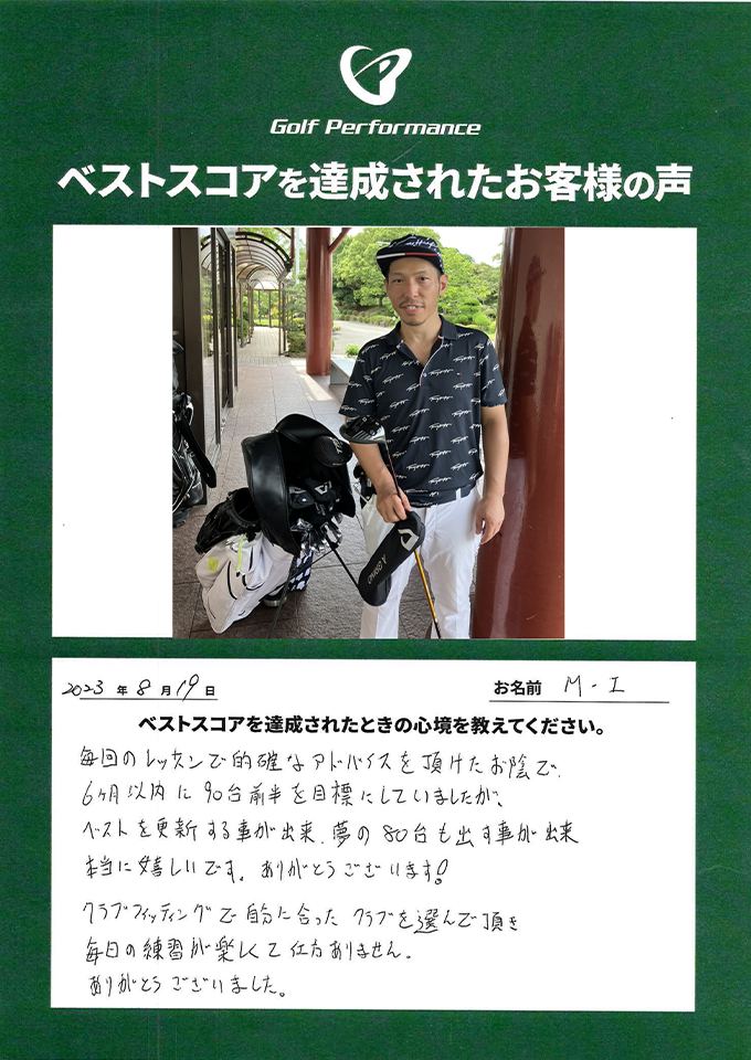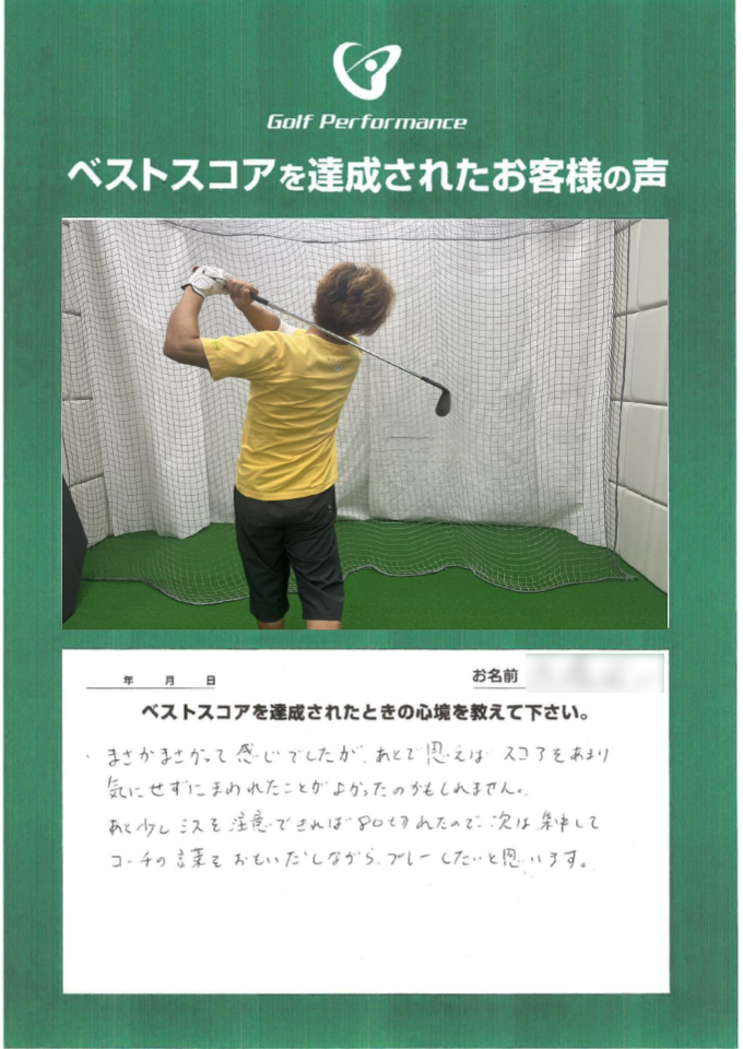 N.I.様 達成日:9/10 入会時のベストスコア…続きを読む