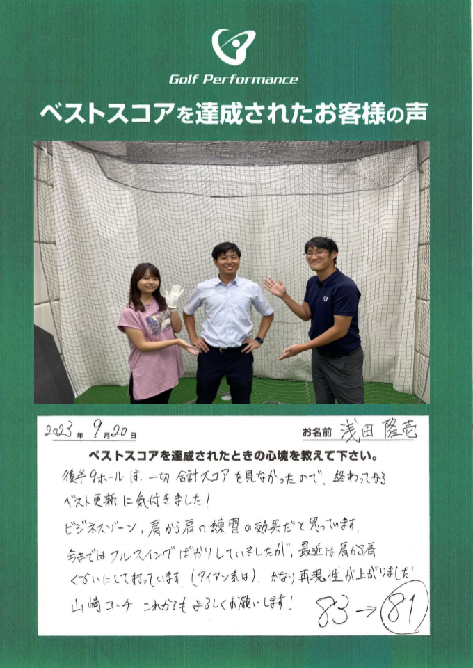 柴原優稔様 達成日:9/12 入会時のベストスコア…続きを読む