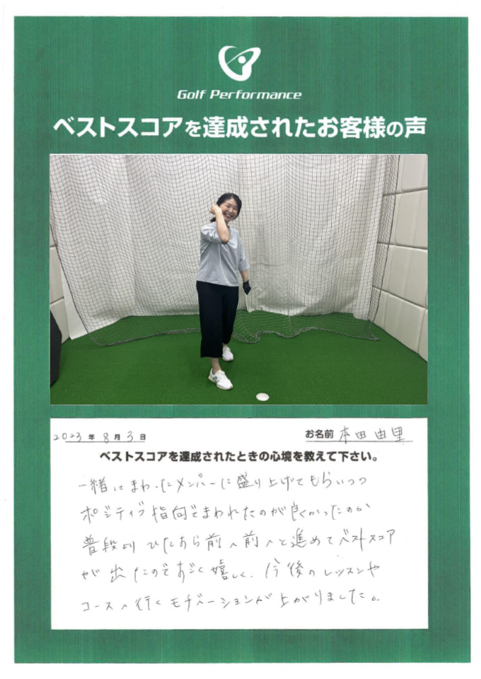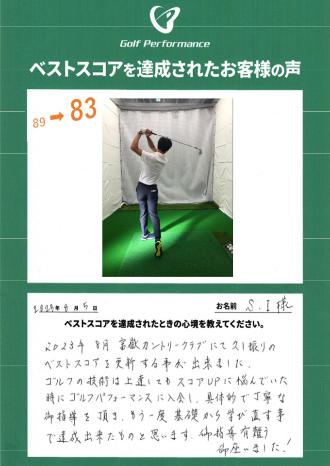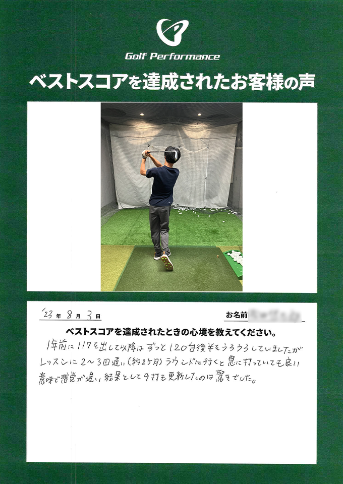S.S.様 達成日:8/5 入会時のベストスコア:…続きを読む