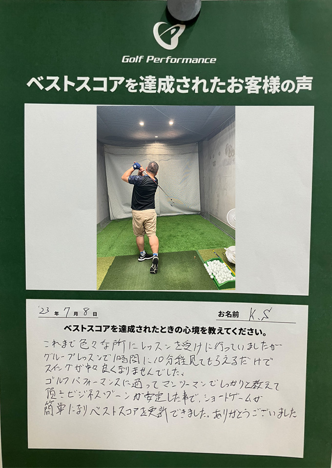 H.K.様 達成日:7/9 入会時のベストスコア:…続きを読む