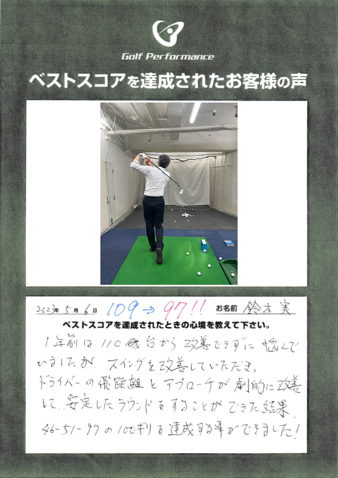 鈴木実さま 達成日:5/2 入会時のベストスコア:…続きを読む