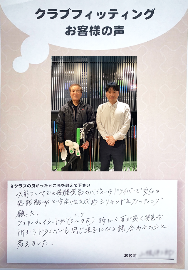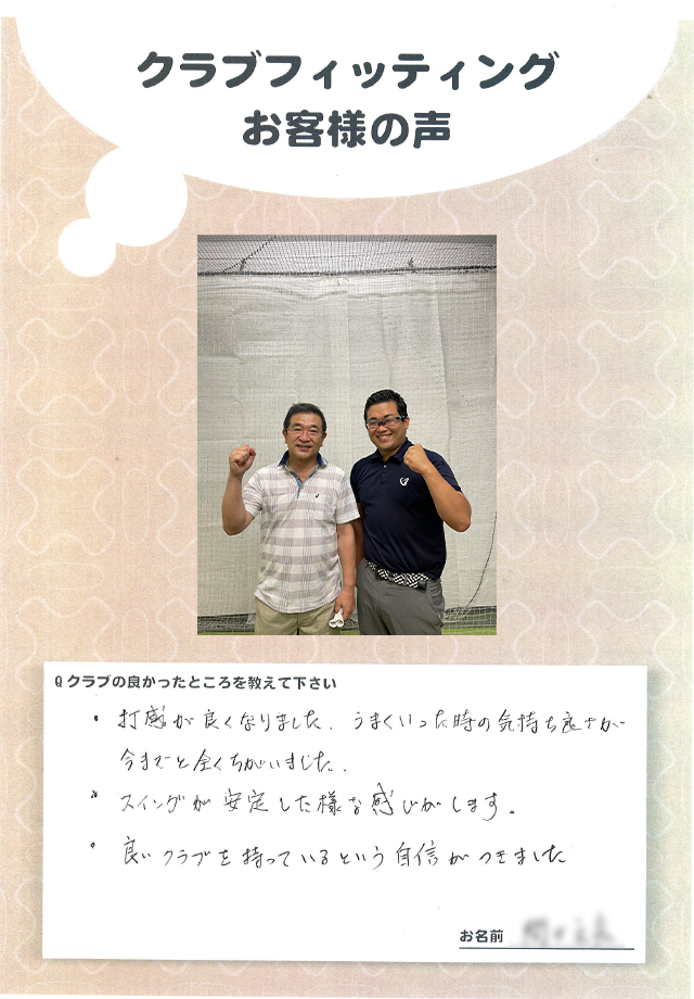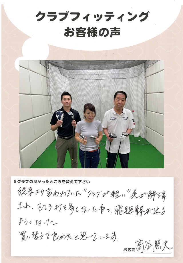 高谷照夫さま 店舗:心斎橋店 担当コーチ:中村