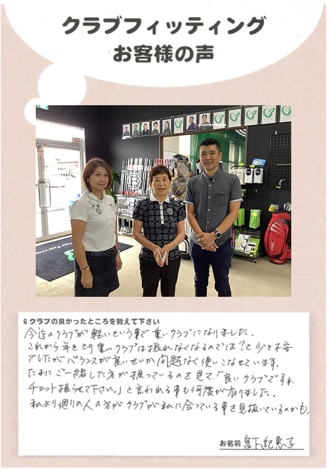 宮下紀恵子さま 店舗:千葉店 担当コーチ:大野