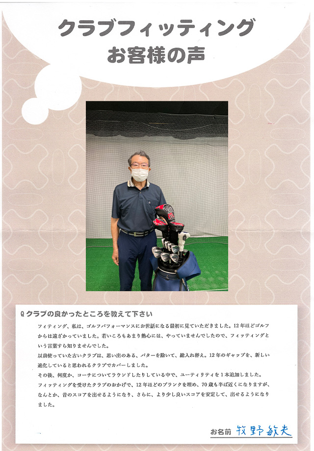 牧野敏夫さま 店舗:府中店 担当コーチ:水柿