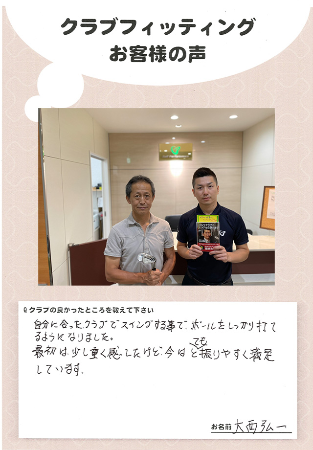 大西弘一さま 店舗:心斎橋店 担当コーチ:中村
