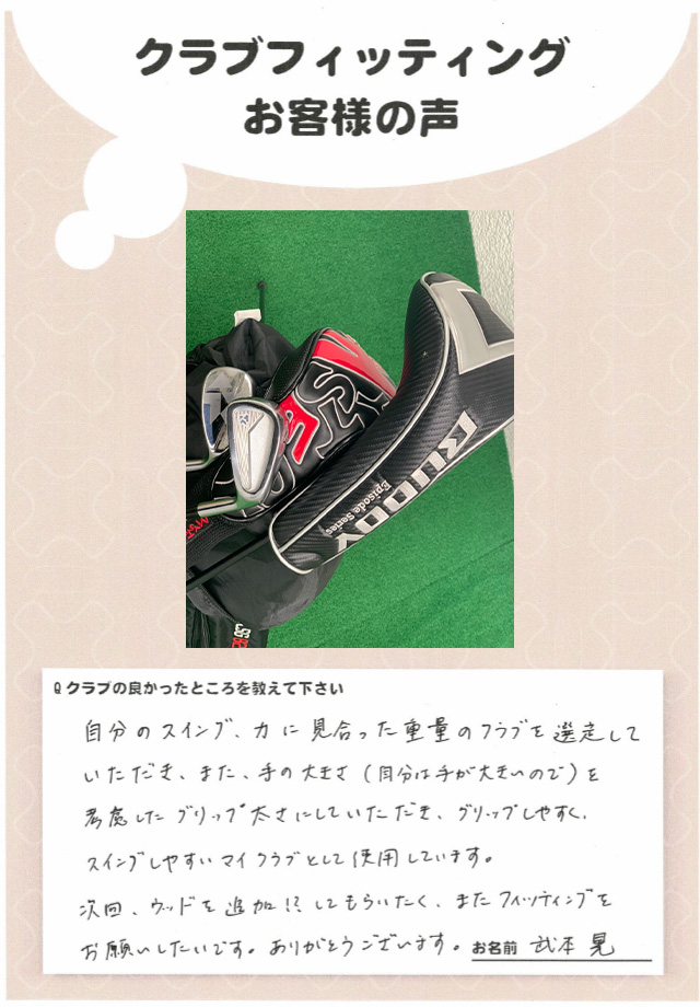 武本晃さま 店舗:心斎橋店 担当コーチ:槙島