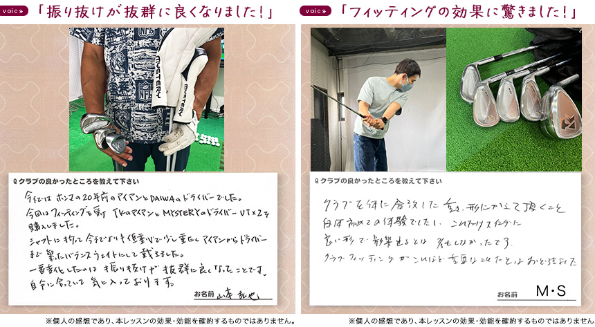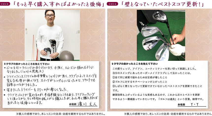 今まで結果が出なかったという方も、このクラブフィッティングを受けるだけで一瞬でスコアを10打マイナス、飛距離20yアップを実現された方もいらっしゃいます。